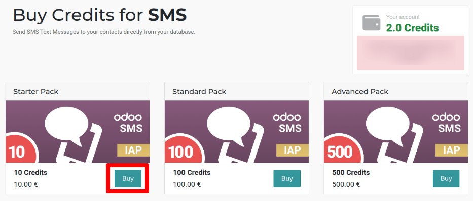 On the Account Information page, click the Buy Credit button. Doing so loads a Buy Credits for (IAP Account) page in a new tab. From here, click Buy on the desired pack of credits. Then, follow the prompts to enter payment details, and confirm the order.