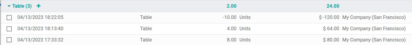 Để xác minh điều này trong LeanSoft, bán 10 bàn trong ứng dụng Bán hàng, xác nhận giao hàng, và sau đó