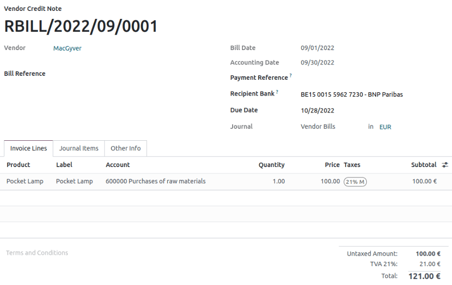 Let’s take an example of a Belgian company that created a credit note of 100 for one of their customers. The due tax is 21%.