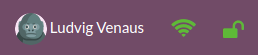 To switch to another user, lock the session by clicking the lock-shaped icon (🔓) at the top-right of the screen and scan your badge.